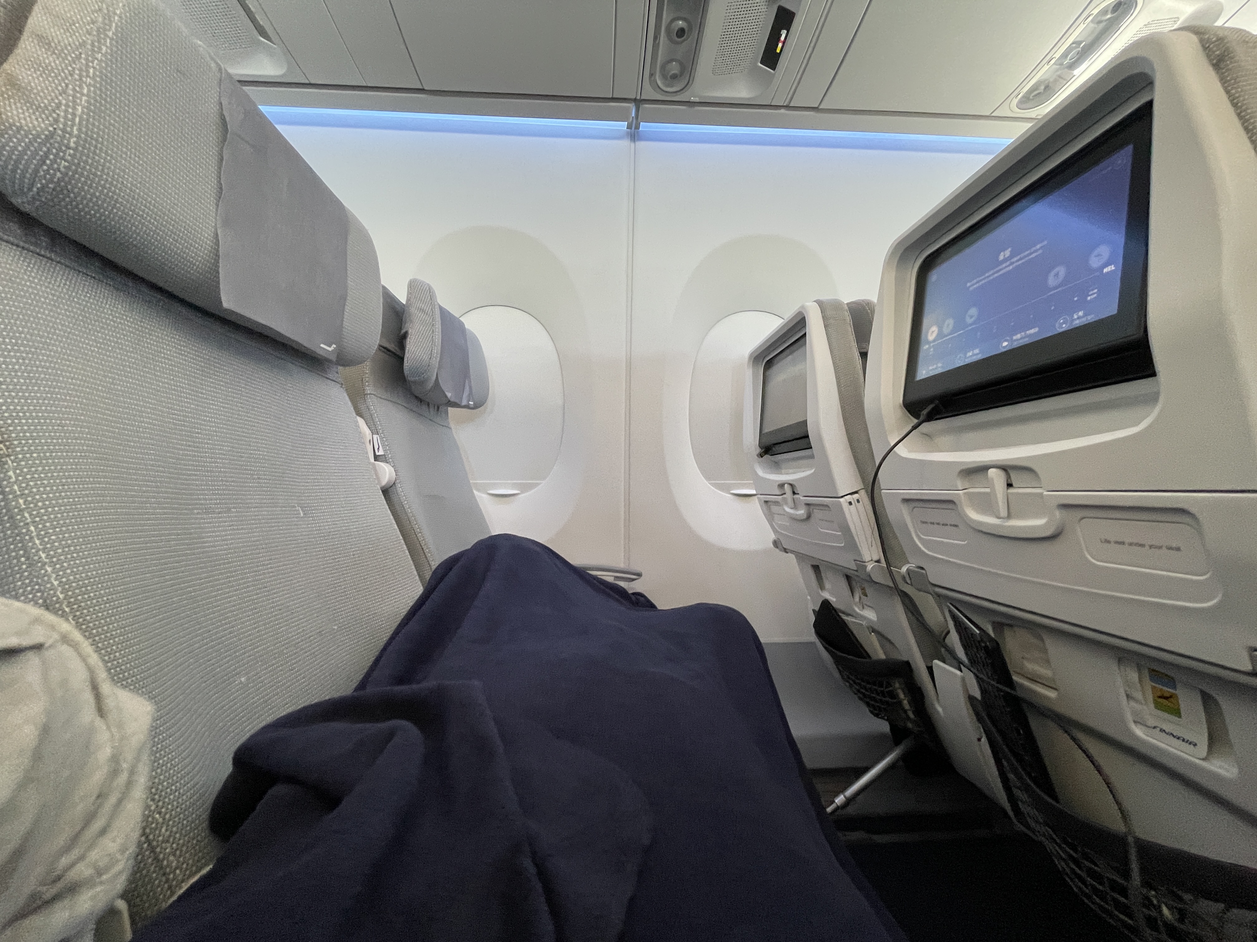비행기에는 사람이 정말 적었다. 덕분에 이코노미에서 눕코노미로 승격되었다. 기내식을 락토비건으로 신청해서 먹었는데, 기대를 안 한 것 치고도 그다지 맛있지 않았다.